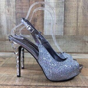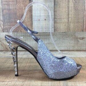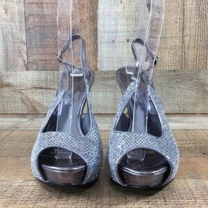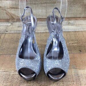 Nicole Miller Slingback High Heels Silver Metallic Womens 8 M Open Toe