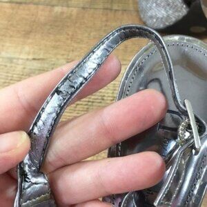 N by Nicole Miller Slingback High Heels Silver Metallic . Open toe with buckle closure and 4.5 stiletto heels. Womens size 8 Medium.