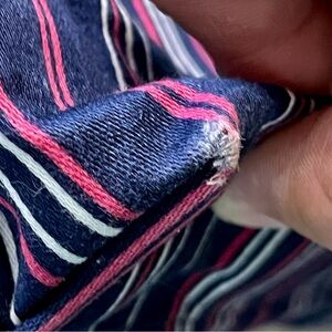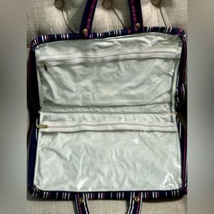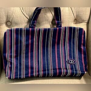 RARE & VINTAGE” used. In good condition. Navy blue/ pink & white stripes. With gold hardware. Zipper & plastic in case pockets are intact. Inside has monogram brand name all over. No discoloration of the plastic. No tears, no stains. Some present fading usage on the corners. But no tears/ no damages on the fabric. Plz reflect on photo’s for conditions.