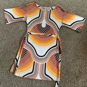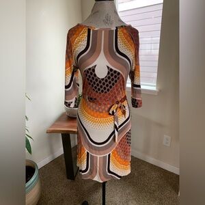 Trina Turk 100% Silk Dress Retro Tie Waist Sz 2 USA cocktail