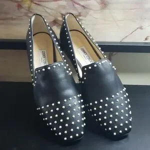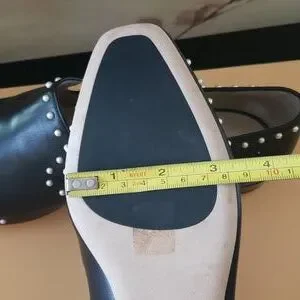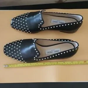 Elegant black flats with pearl-like studs. Sleek and stylish design. Perfect for any occasion. Size 40