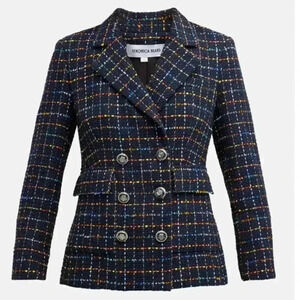 Veronica Beard Dickey Blazer Size 2 Tweed Jacket Rumer Double Breasted Navy Red