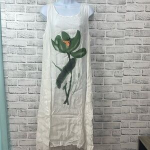 White with green and orange flower, sleeveless, lining, material tag is missing, crinkled fabric maybe a cotton/polyester blend(?),colors may vary due to lighting,NWOT, Size: XXL