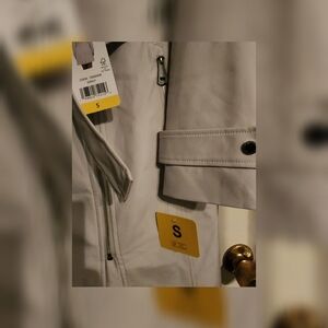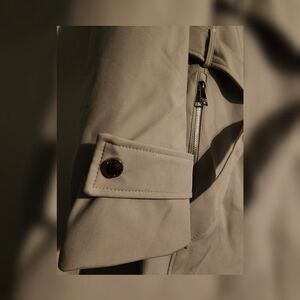 The coat combines timeless trench coat styling with practical features, making it versatile for fall weather and mild winter months.