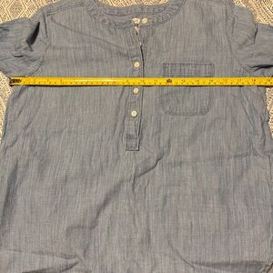 Cute chambray top! The sleeves can be rolled, and the shirt is a tad longer in the back. Very cute with leggings and black denim also! I’ve also paired with navy dress pants