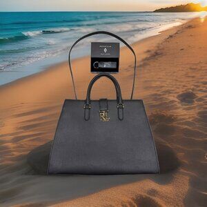 ✅Ralph Lauren Black Pebbled Leather Brigitte Tote Handbag Plus Key Chain R.L.L