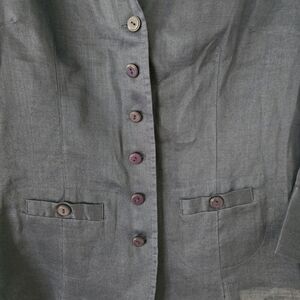 Puli 100% Linen Shirt Sz 10 Women Blue 3/4 Bell Sleeve Button up Lagenlook