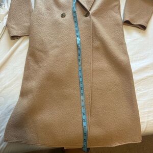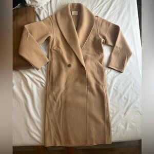Beige merino wool coat from Aritzia’s Wilfred. Barely worn. There is a small dent in the arm. The coat is unlined.