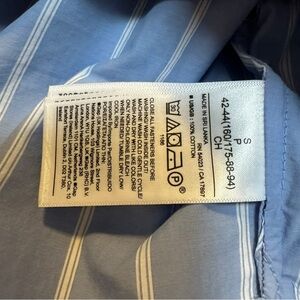 Light blue shirt with white stripes. Classic design with a neat collar.