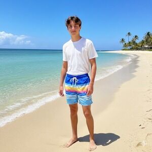 Chubbies Swim Trunks Youth Boys Large Rainbow Stripe Lined Drawstring Vacation