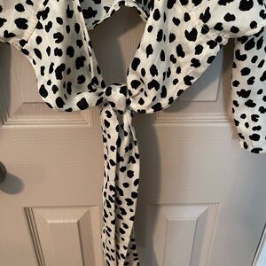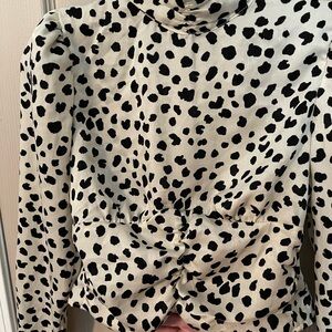 Rabbit Rose Dalmatian print cropped high neck open back blouse. Fitted with ruching & back tie. Long sleeve. Beautiful & sexy, like new condition.