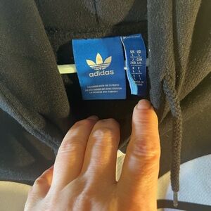 Classic black hoodie with iconic white Adidas Trefoil logo. Comfortable and stylish for everyday wear.