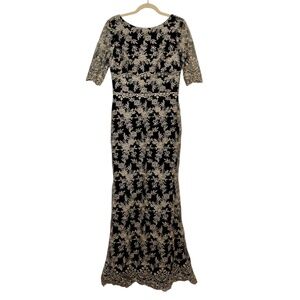 Anthropologie BHLDN Betsy Dress Black Cream Lace Maxi Gown Size 10