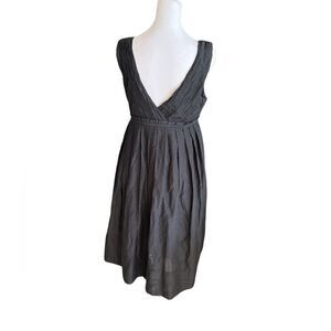 In great condition, looks new, v neck, side zipper cotton dress, lined . Dress is 37 inches long, empire waist, 17 inches armpit to armpit.