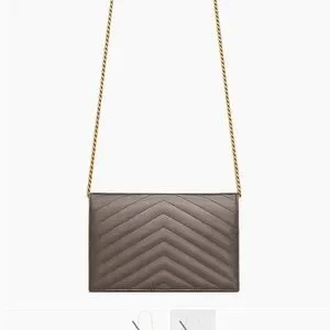 Chain pouch decorated with the Cassandre and iconic chevron-quilted topstitching. Practical and compact, it features a zip pocket. It may be carried on the shoulder or crossbody with a leather-reinforced chain strap.