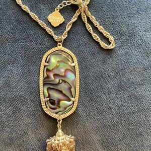 Kendra Scott Gold Necklace with Iridescent Abalone Tassel long Pendant