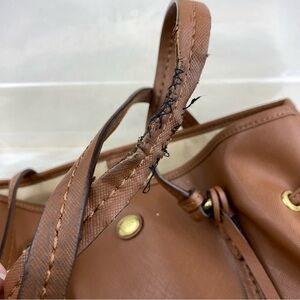 Coach tan leather bag Features gold accents and dual straps. The strap they have some sticking see pictures please