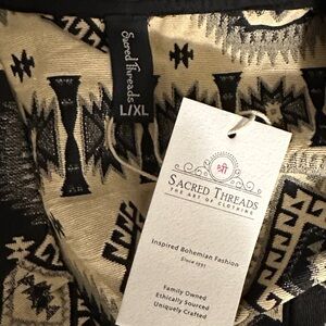 NWT. M/L. Sacred Threads Black and Cream Patterned Blazer. LG/GR/GR01