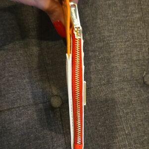 Charming Loungefly wallet with a fun french fry design. Features bright orange and white colors. Ideal for fans and collectors.