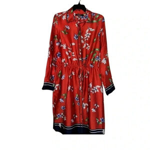 Lauren Ralph Lauren Paza Red Floral Print Twill Dress Size 10