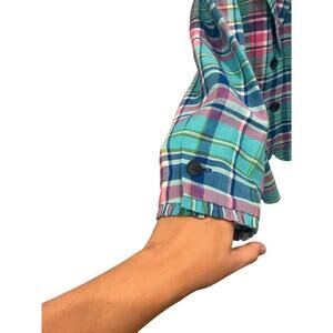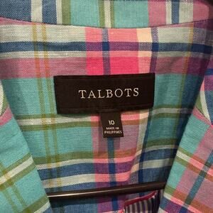 Talbots Womens Single Breasted Linen Blend Blazer Size 10 Plaid Preppy Classic