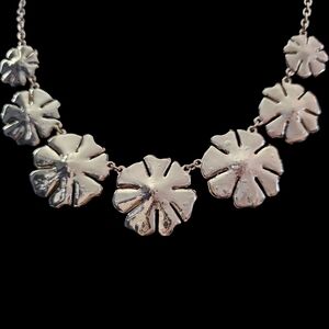 A beauty of a statement necklace featuring flowers that graduate in size.