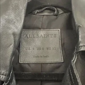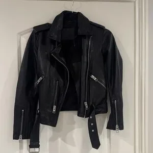 Chic black leather jacket with silver zippers. Classic moto style. Perfect for a bold look. Only worn once