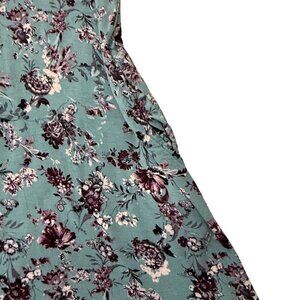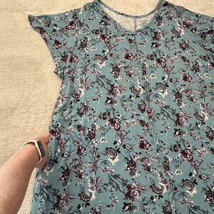 Catherines Dress Size 3X Floral Teal Burgundy Knit Short Sleeve Pockets