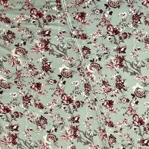 • Color: Teal blue with burgundy floral print