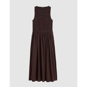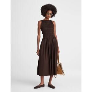 Madewell The Melody Smocked Midi Dress Cotton Molasses Brown A Line Small NWT.