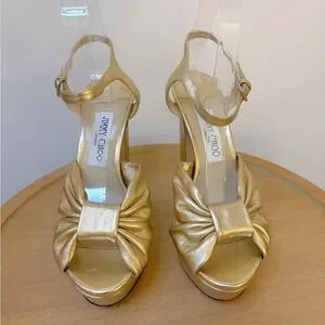 In great condition Jimmy Choo Heloise 120 platform heels. Minor wear at back heel and front toe area.