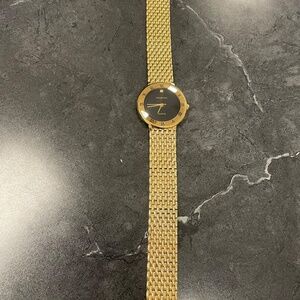 Gorgeous like new ladies wristwatch from the 1980's. Japanese made quartz and stainless steel workings. Halston stamped clasp on back. Batteries need replacing, but otherwise in phenomenal condition. No scratches on watch face or dents. Approx. 9" long and 9cm wide. Please feel free to reach out for other questions or measurements!