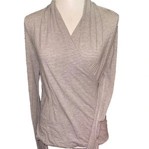 Gorgeous wrap style pullover top by Lululemon. “Radiant Long Sleeve” style in "Heathered Medium Grey" Vitasea (Pima Cotton / Lycra blend) knit.