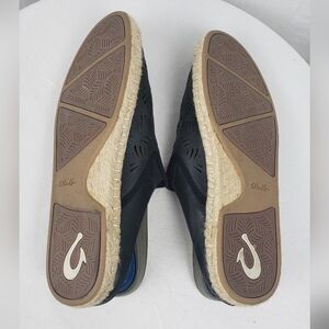 Olukai Kaula Olu lli Black Leather Espadrille Mules Sz 10
