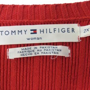 1990s Vintage Tommy Hilfiger Sweater Red V-Neck Preppy Chunky Knit Sweater 2XL
