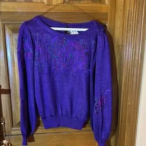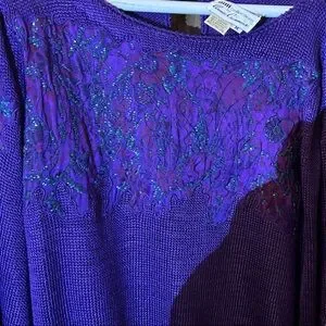Add a touch of elegance to your wardrobe with this vibrant purple crew neck sweater with beading. Perfect for any occasion.