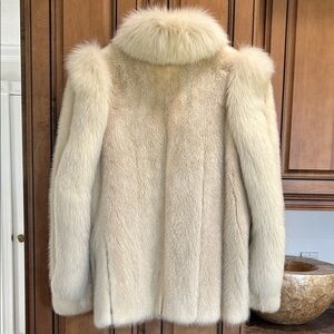 Indulge in the luxurious feel of mink cream fur jacket. Perfect for adding a touch of elegance to any outfit. Fits size S/M