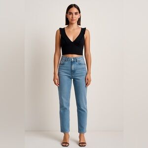 Elevate your everyday style with this chic black crop top from Zara. Featuring a deep V-neckline, wide straps with subtle ruffle trim, and a flattering cropped length, this versatile piece is perfect for pairing with high-waisted jeans, skirts, or shorts.