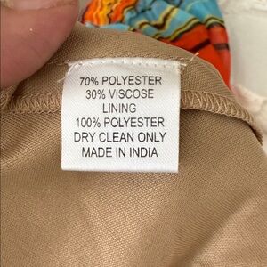 Colorful A-line skirt with bold stripes. Features orange, blue, and yellow hues. Perfect for a lively look.