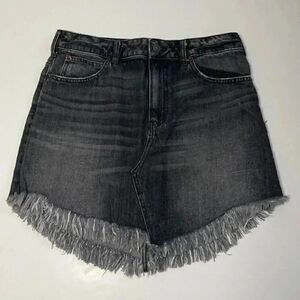 We The Free People Bailey Mini Black Skirt Frayed Denim. 100% Cotton. Please see photos for indications of use and measurements.