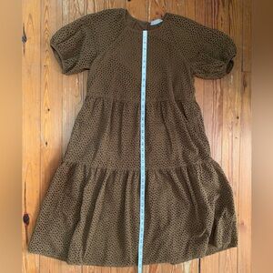 Tiered eyelet mid dress with pockets. Lined, very comfortable and flattering. Excellent used condition!