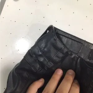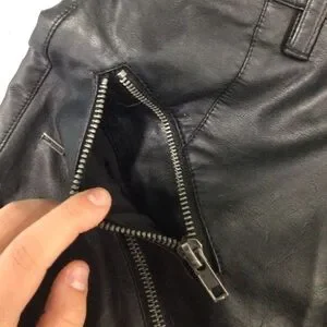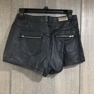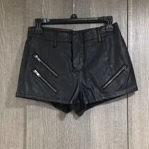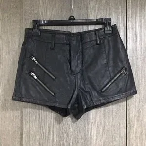 Chic high waist shorts with zipper accents. Edgy leather look.