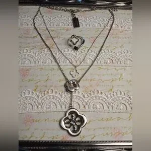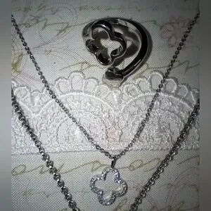 This gorgeous necklace set and matching ring are from the 'My Flat in London' brand. This set features two stunning silver and crystal pendants from the Silver Socialite Collection and a simple matching ring...perfect for adding a touch of sophistication to any outfit!