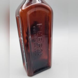 Antique Ferrol Cod Liver Oil Bottle, National Ferrol Co Toronto, Amber Glass