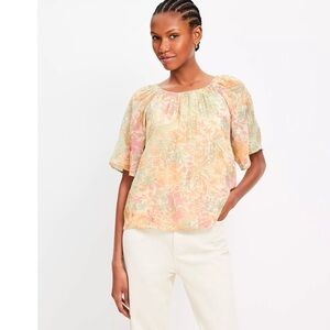 LOFT Shimmer Gold Floral Flutter Sleeve Cottagecore Bohemian