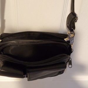 Black NWT Cross Body Genuine Leather Bag 22-in Strap 2 front, 1 back pocket.