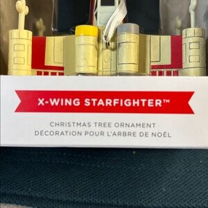 Star Wars X-Wing ornament by Hallmark. Features striking red and gold accents. Perfect for fans and collectors.