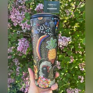 Ready for a dose of summer? This Starbucks x FARM Rio Limited Edition collaboration brings a travel tumbler perfect for gifting, or for yourself. Celebrate the coffee and culture of Rio de Janeiro, Brazil with this black tumbler that features a vibrant, colorful design with an international flair. It holds 24 ounces and likely fits in your car’s cup holder. Metal cup. BPA free. Screw on top and straw. NEW with Tags.