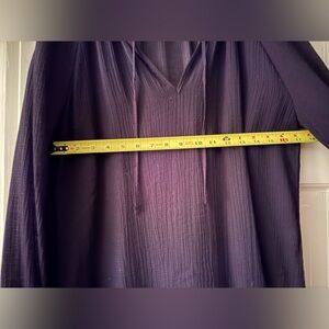 @klkier01 85% viscose 15% polyamide It measures 17.25 inches pit to pit on hanger