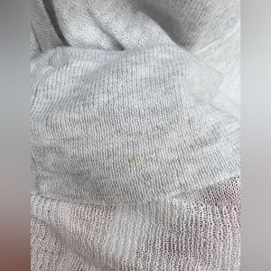 Great used condition. Zippered hoodie light grey cardigan'/jacket with pockets on both sides. Bottom hem is double layered. This is one of my favorite. Very light weight.